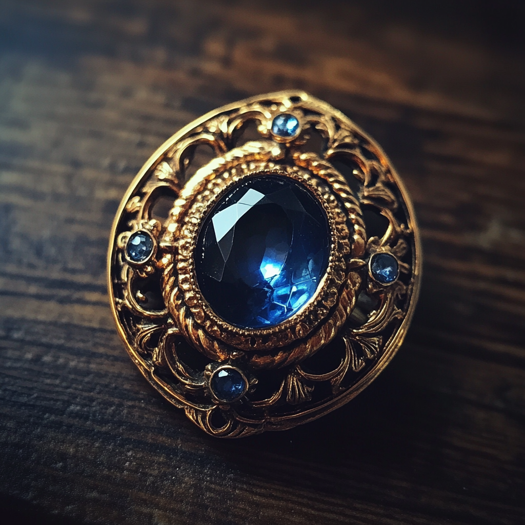 Un primer plano de un broche vintage | Fuente: Midjourney