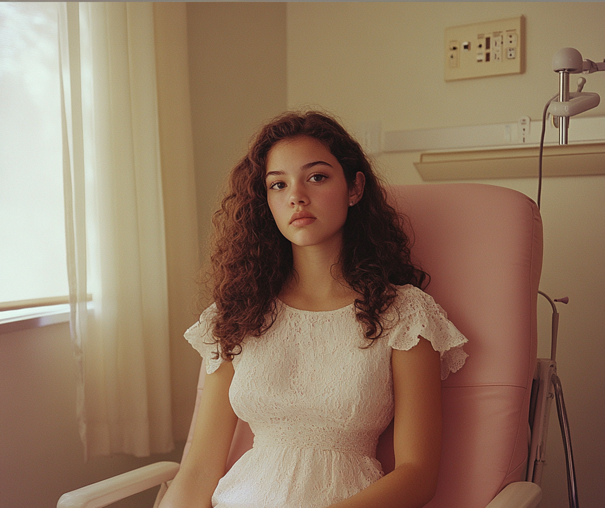 Una joven sentada en la consulta de un médico | Fuente: Midjourney