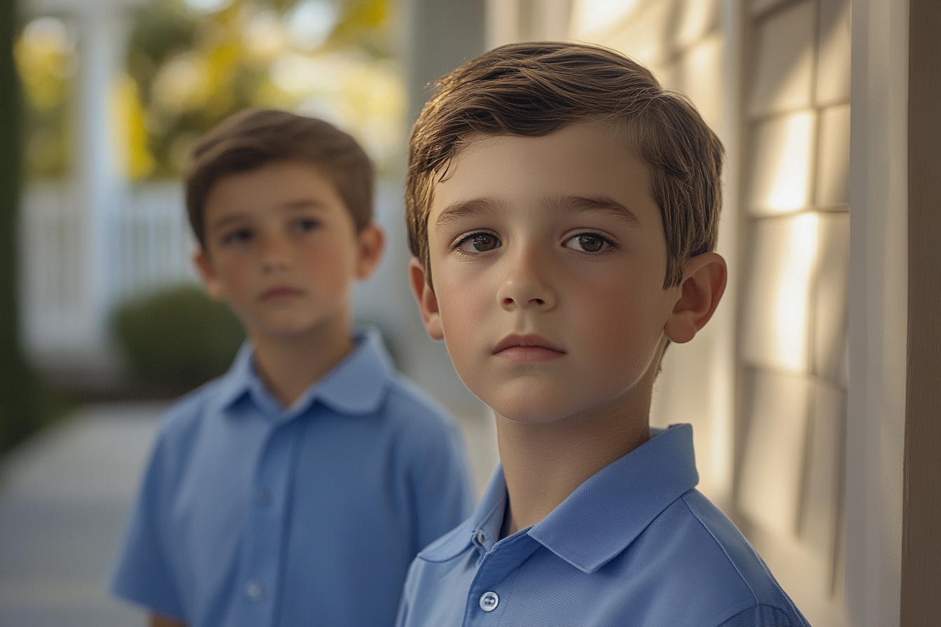 Dos niños de pie al aire libre | Fuente: Midjourney