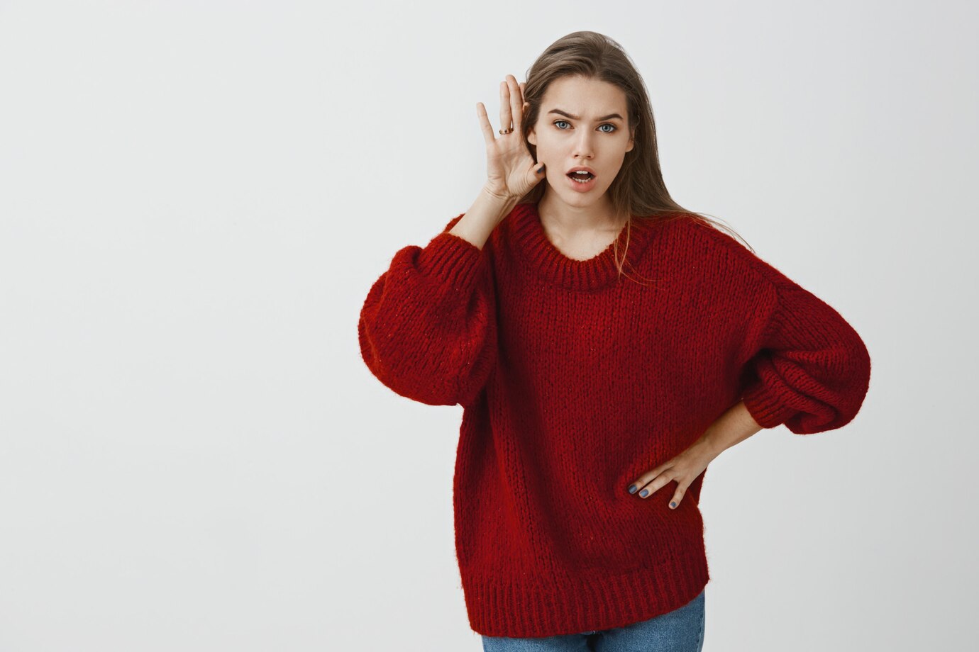 Una mujer escuchando a escondidas | Fuente: Freepik