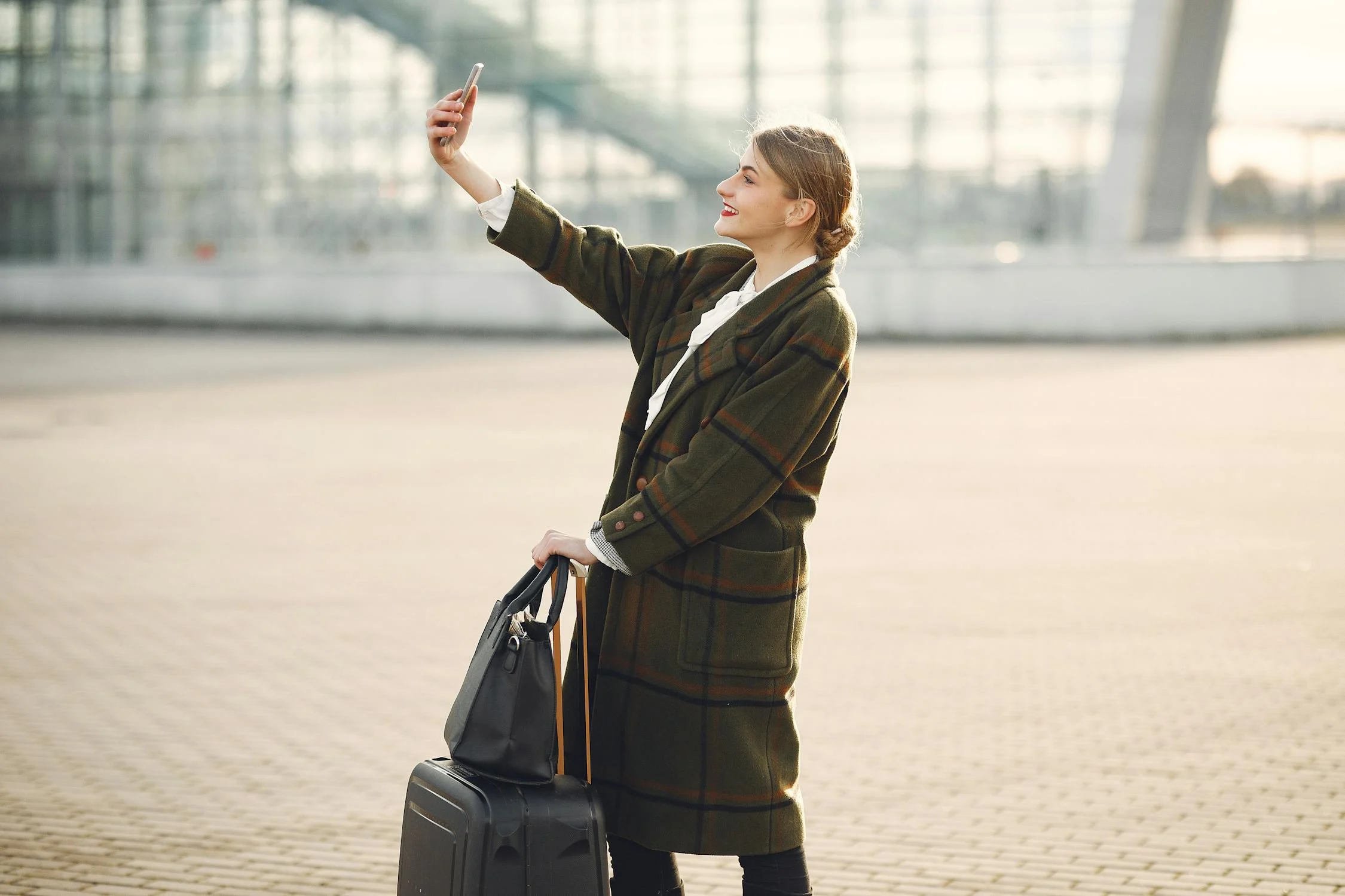 Una mujer con su teléfono en un aeropuerto | Fuente: Pexels