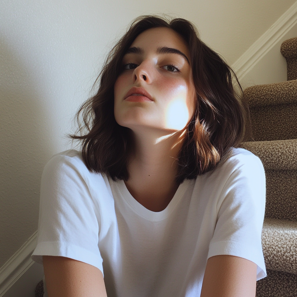 Una adolescente sentada en una escalera | Fuente: Midjourney