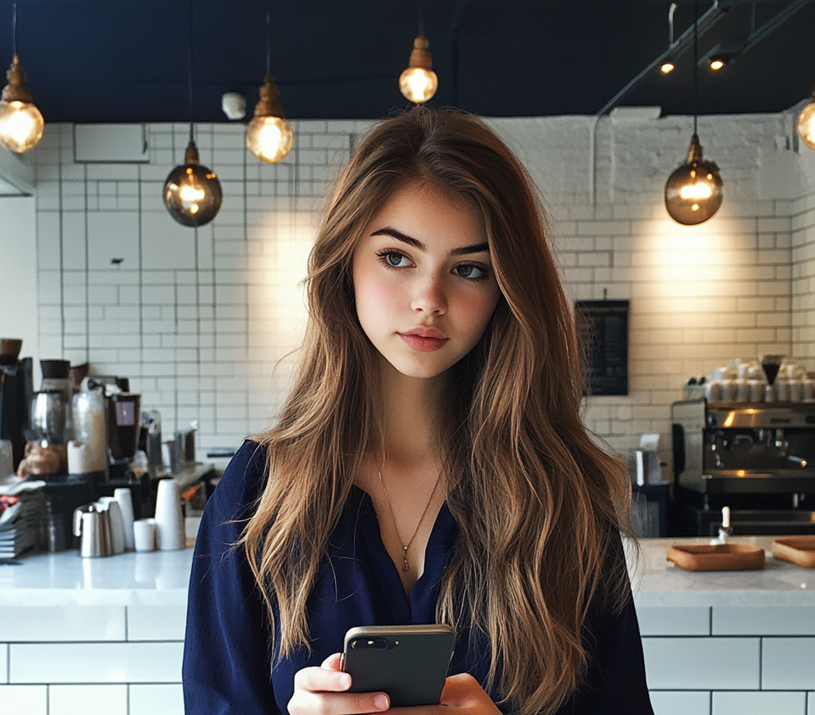 Una joven de pie en una cafetería | Fuente: Midjourney