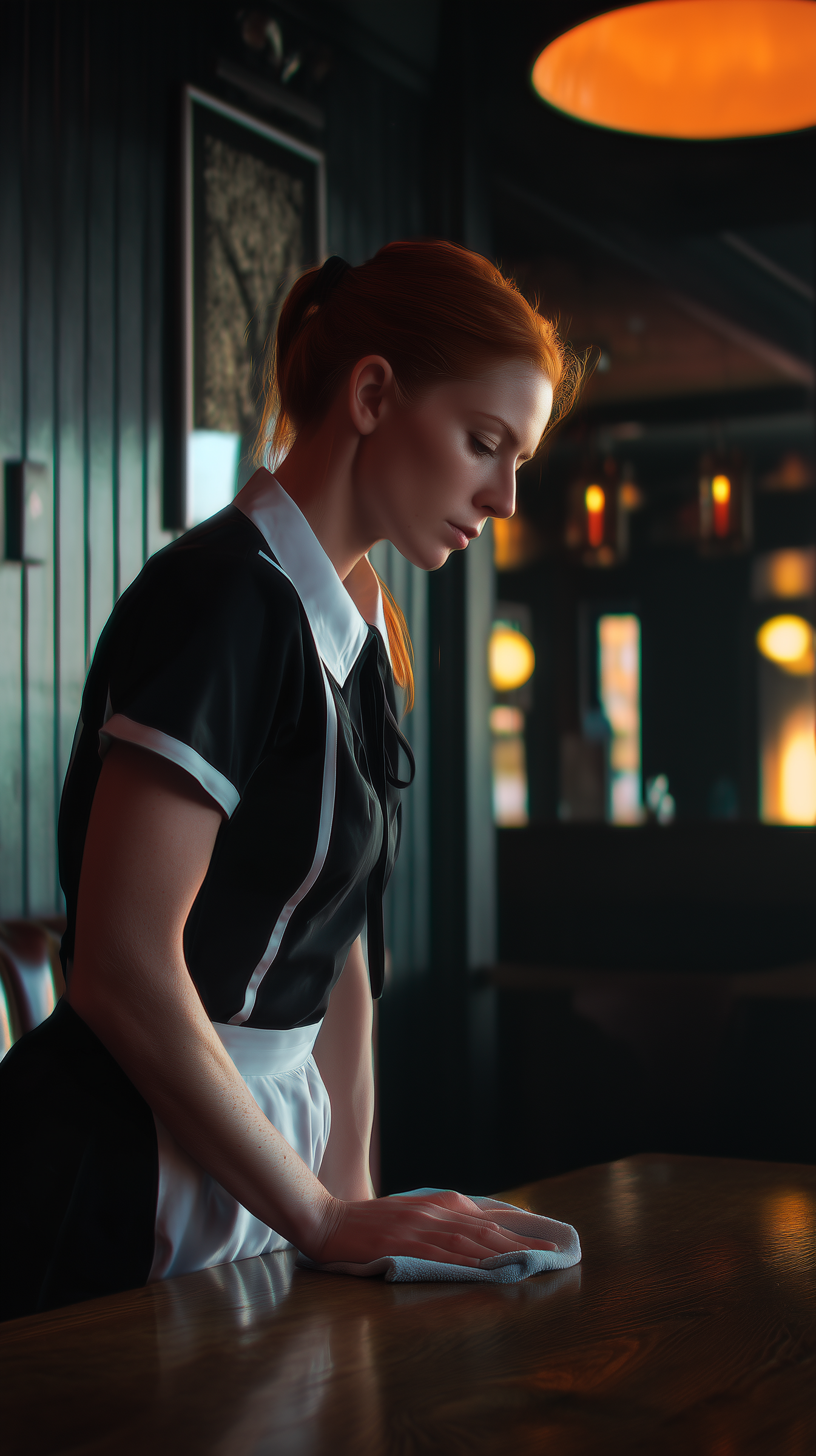 Frente a él había una joven con uniforme de camarera. Tenía el pelo rubio recogido en una coleta desordenada.