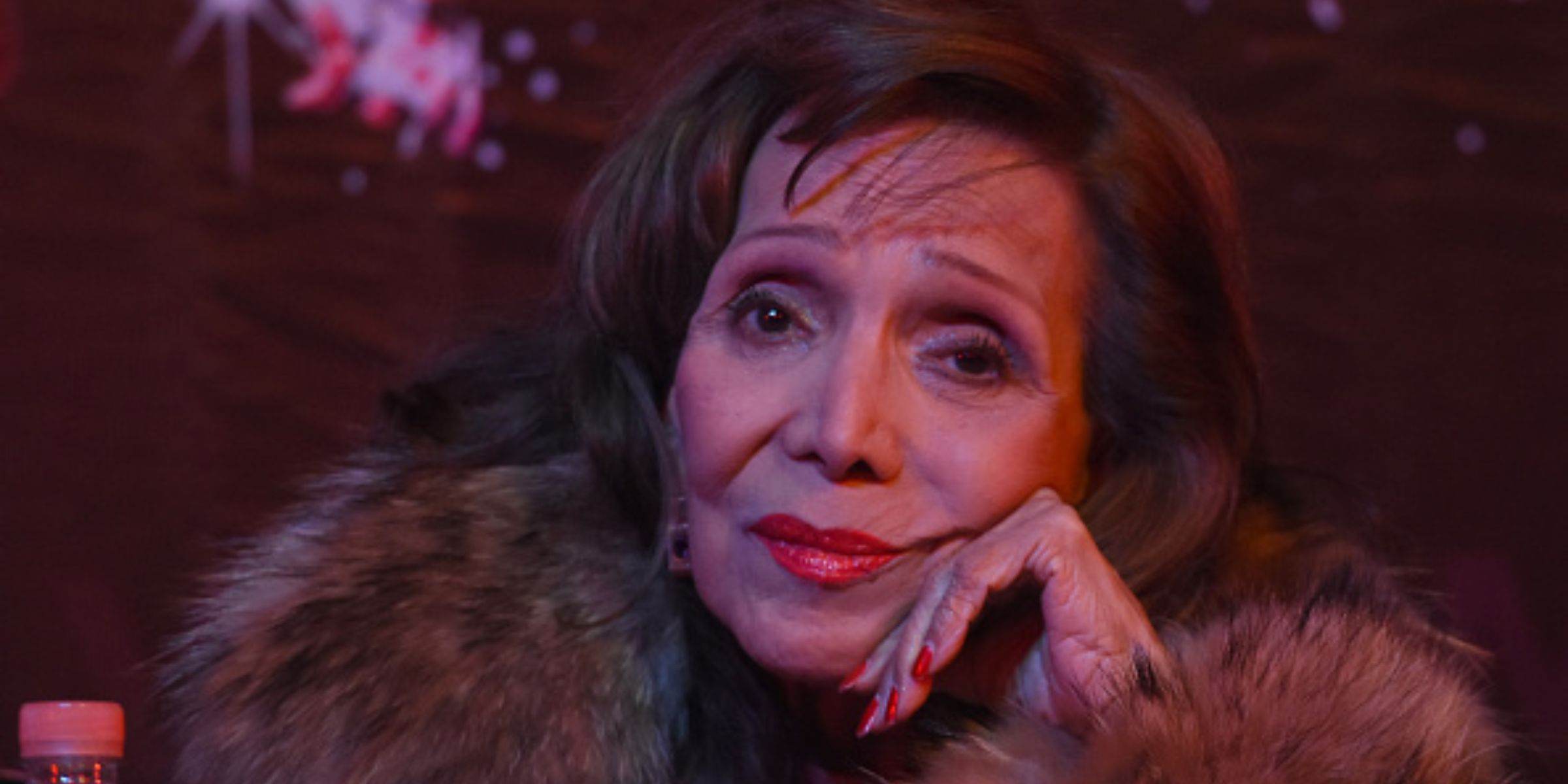 La fotografía difundida muestra a María Victoria sentada al centro de una mesa familiar, luciendo una blusa roja de cuello alto y un abrigo negro. El maquillaje sutil destaca sus labios pintados en tono carmesí. A sus 102 años, mantiene una imagen arreglada y elegante, rasgos que han caracterizado su figura pública desde los inicios de su carrera.