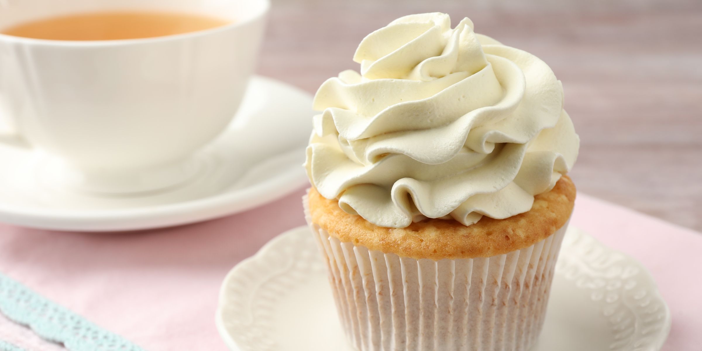 Compré dos magdalenas de vainilla con glaseado rosa.