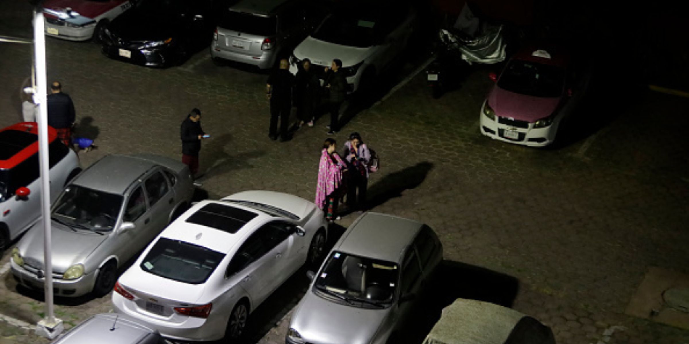Personas se resguardan en un estacionamiento tras un sismo de magnitud 5.3 que sacudió la Ciudad de México, México, el 16 de enero de 2026, con epicentro en San Marcos, Guerrero, lo que activó las alertas sísmicas en varias zonas de la capital y otros estados | Fuente: Getty Images