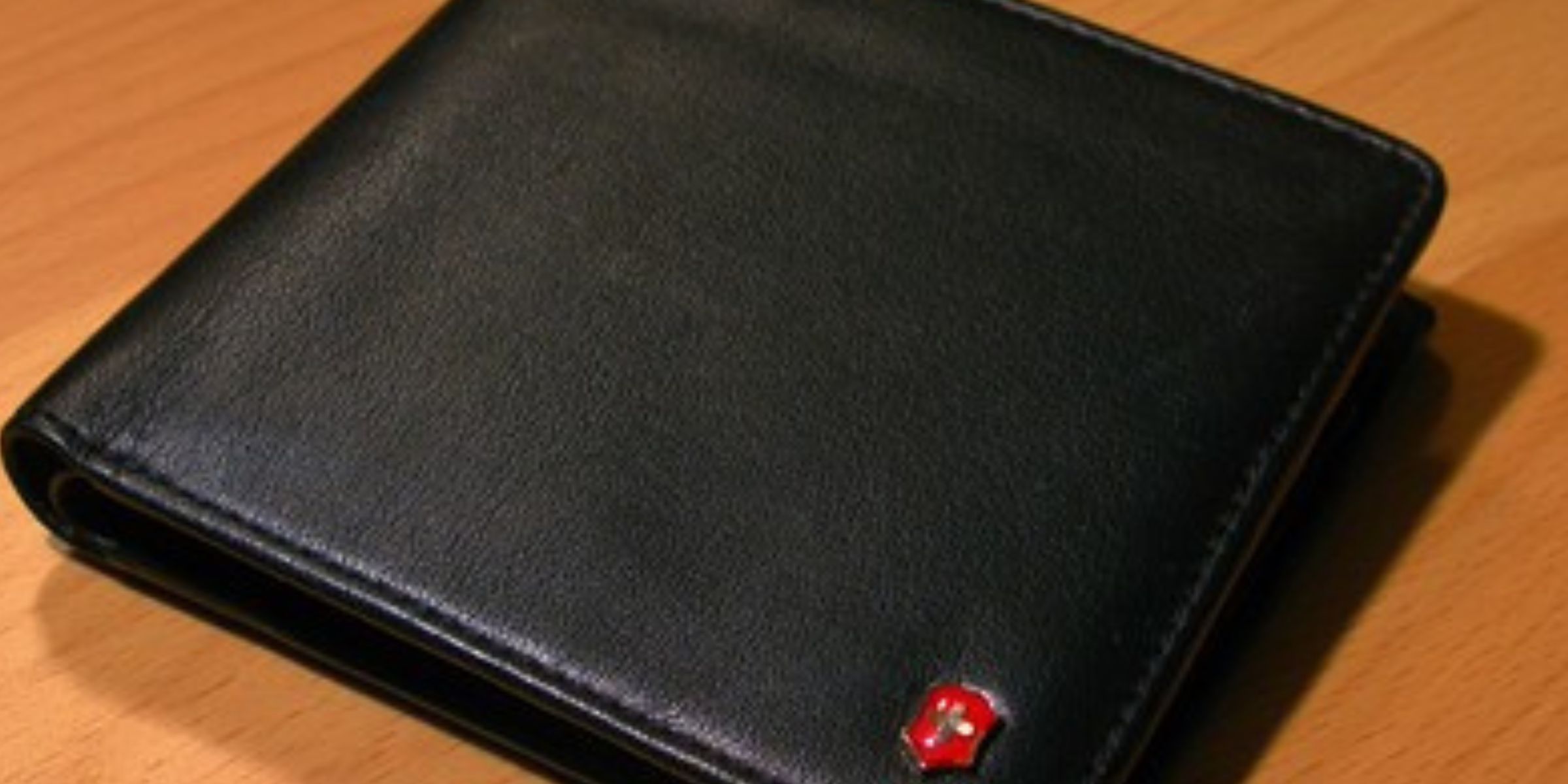 Una cartera de cuero negro desgastado, reblandecido por años de uso.