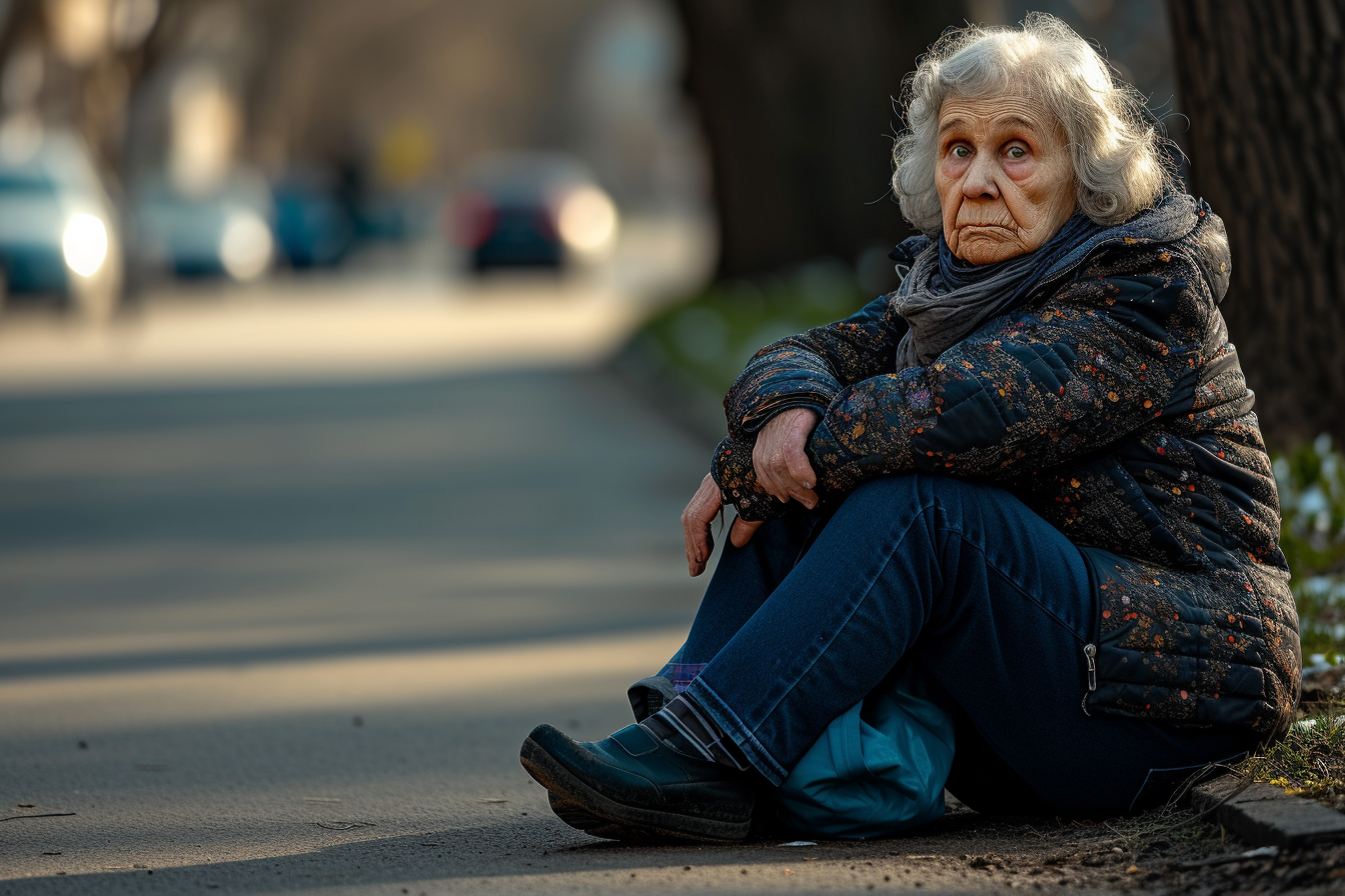 Invece, sotto un lampione ronzante, vidi un'anziana donna a piedi nudi in una sottile camicia da notte di cotone, che tremava così tanto che le ginocchia stavano quasi per cedere. Il suo braccialetto di allarme medico diceva: