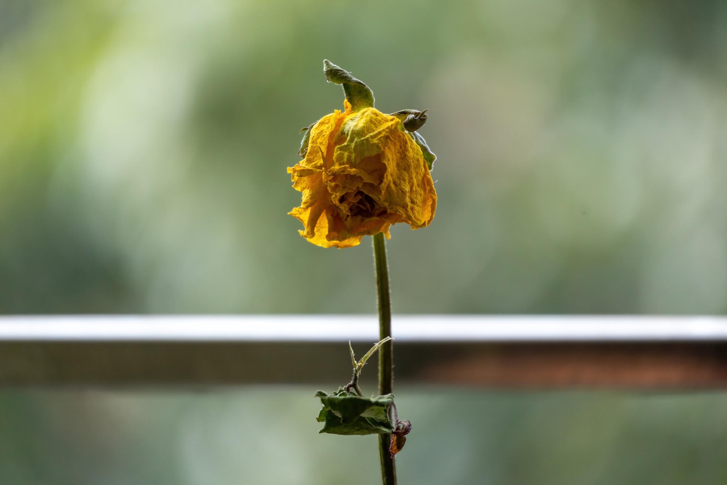Sólo había una rosa amarilla seca en el felpudo.