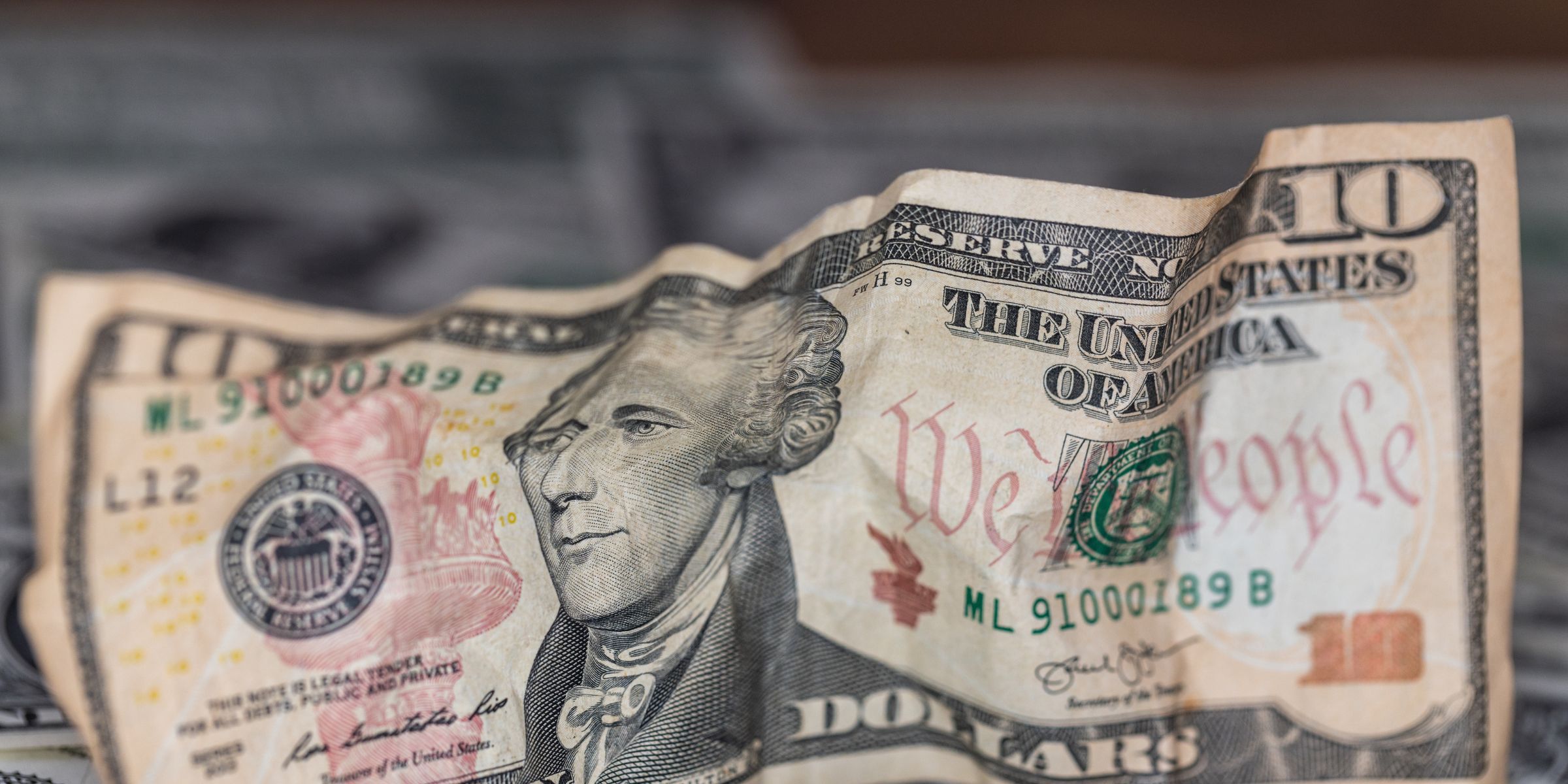 Se metió la mano en el bolsillo y sacó un billete de 10 dólares plastificado y desgastado.